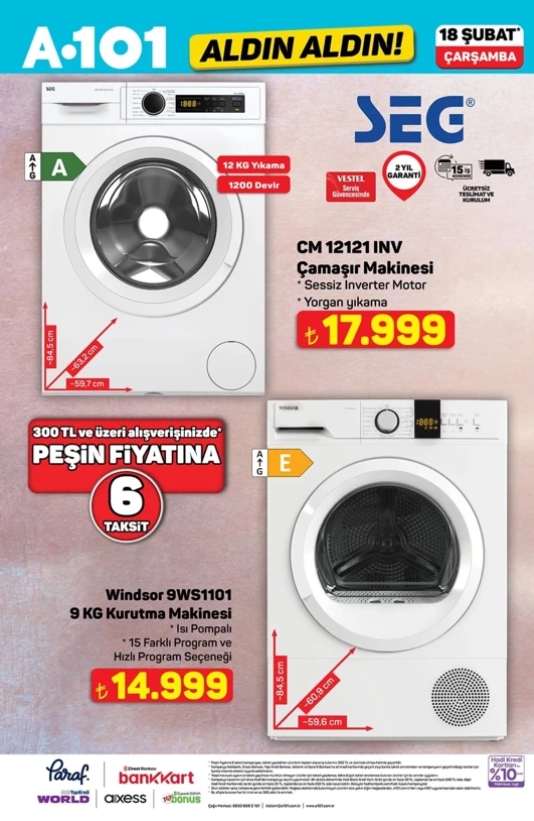 Kampanyanın öne çıkan ürünlerinden biri 12 kg kapasiteli SEG çamaşır makinesi oldu. Ürün 17.999 TL’den satışa çıkacak. 9 kg kapasiteli kurutma makinesi ise 14.999 TL fiyatla tüketicilere sunulacak.