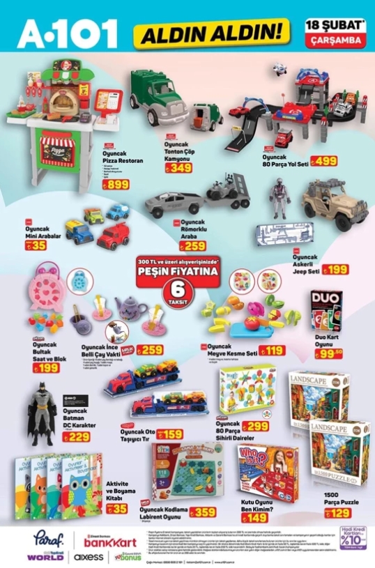 Çocuklara yönelik oyuncak pizza restoran seti 899 TL, oyuncak çöp kamyonu 349 TL, uzay oyun seti 499 TL fiyatla satışa çıkacak. 1500 parçalık puzzle ise 129 TL’den raflarda olacak.