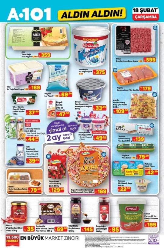 2 kg yoğurt 375 TL, lor peyniri 69,50 TL, tavuk pirzola 179 TL, dondurulmuş pizza 169 TL’den satışa sunulacak.