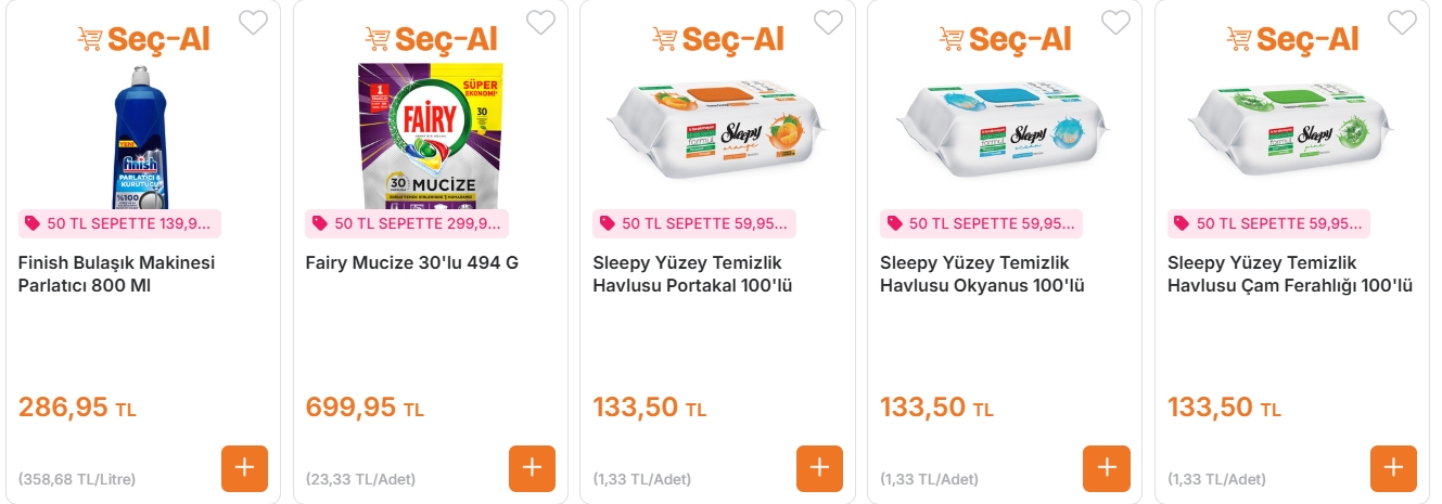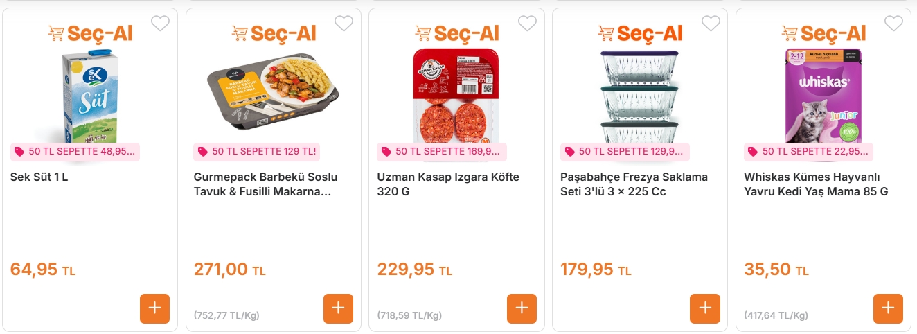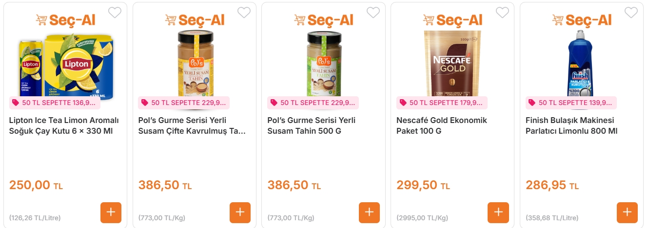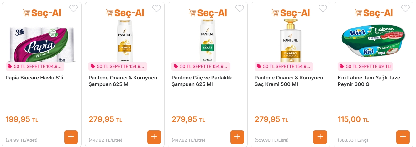 Kampanyalı ürünler dışında en az 50 TL’lik alışveriş şartı bulunuyor.