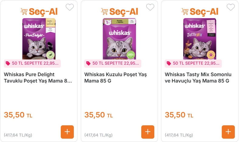 Whiskas Kuzulu Poşet Mama 85 G – 35,50 TL