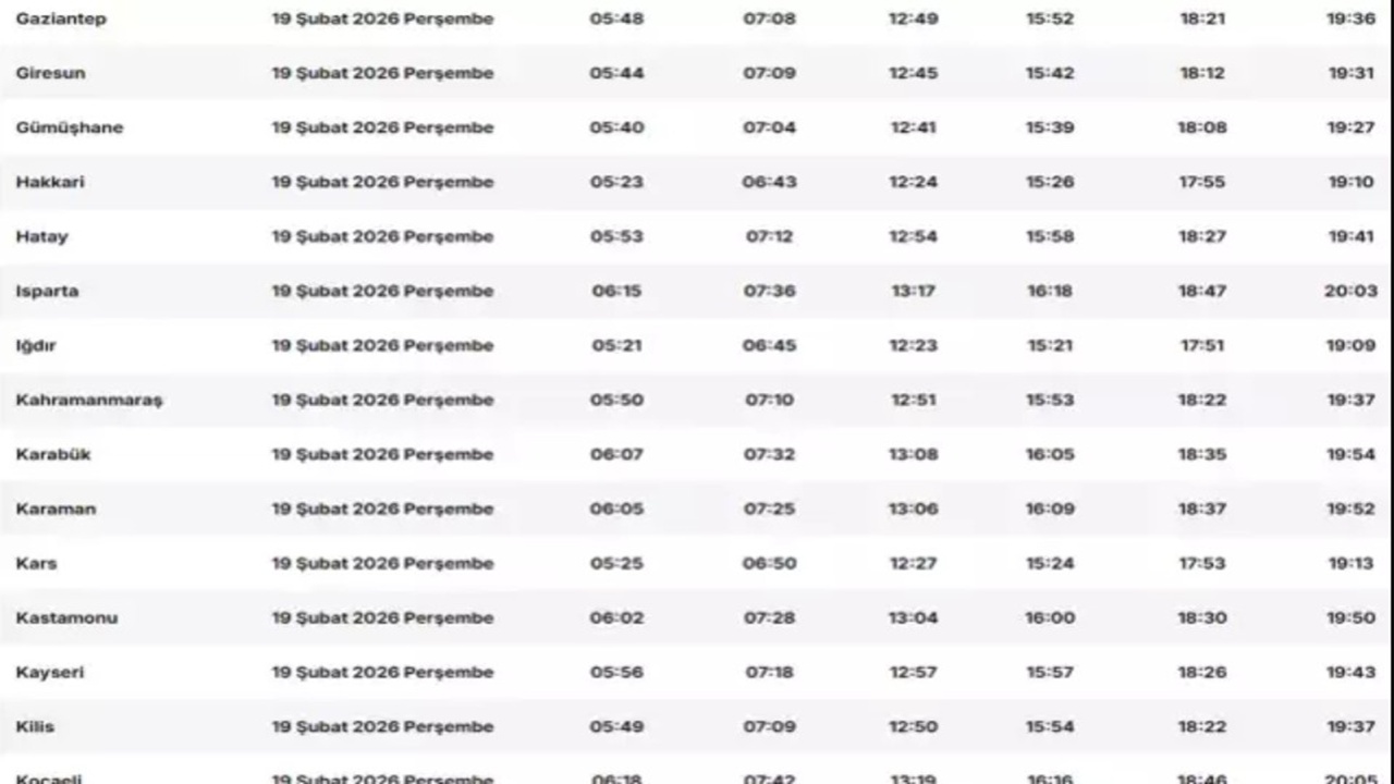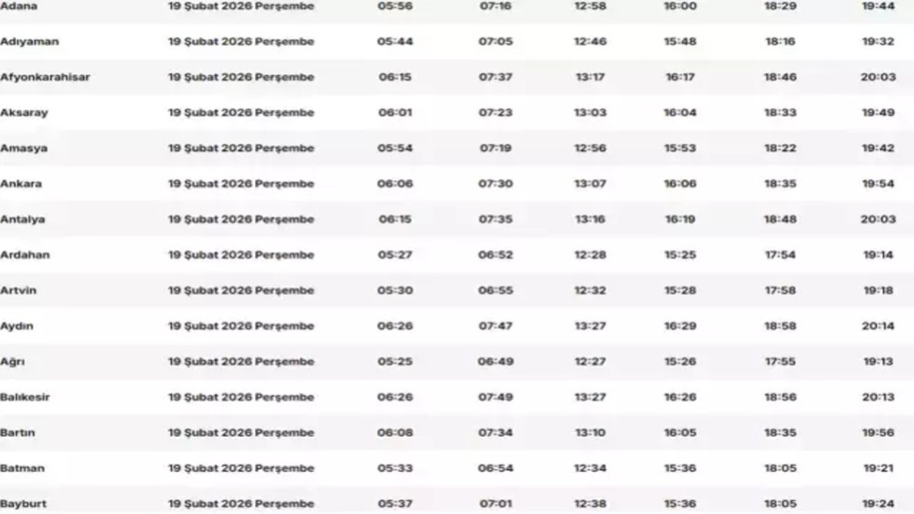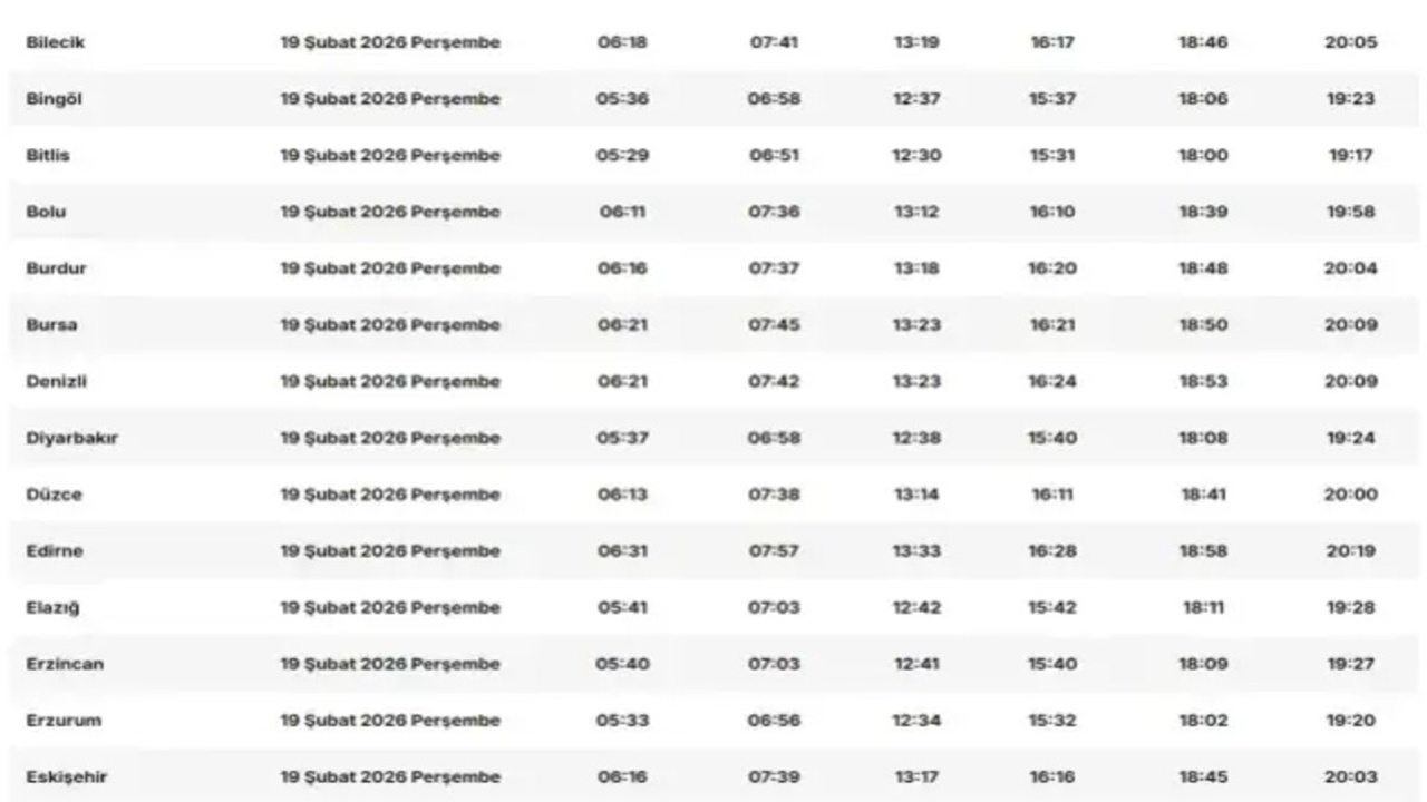 Diğer illerin sahur ve iftar saatleri Diyanet İşleri Başkanlığı’nın resmi takvimi üzerinden öğrenilebiliyor.