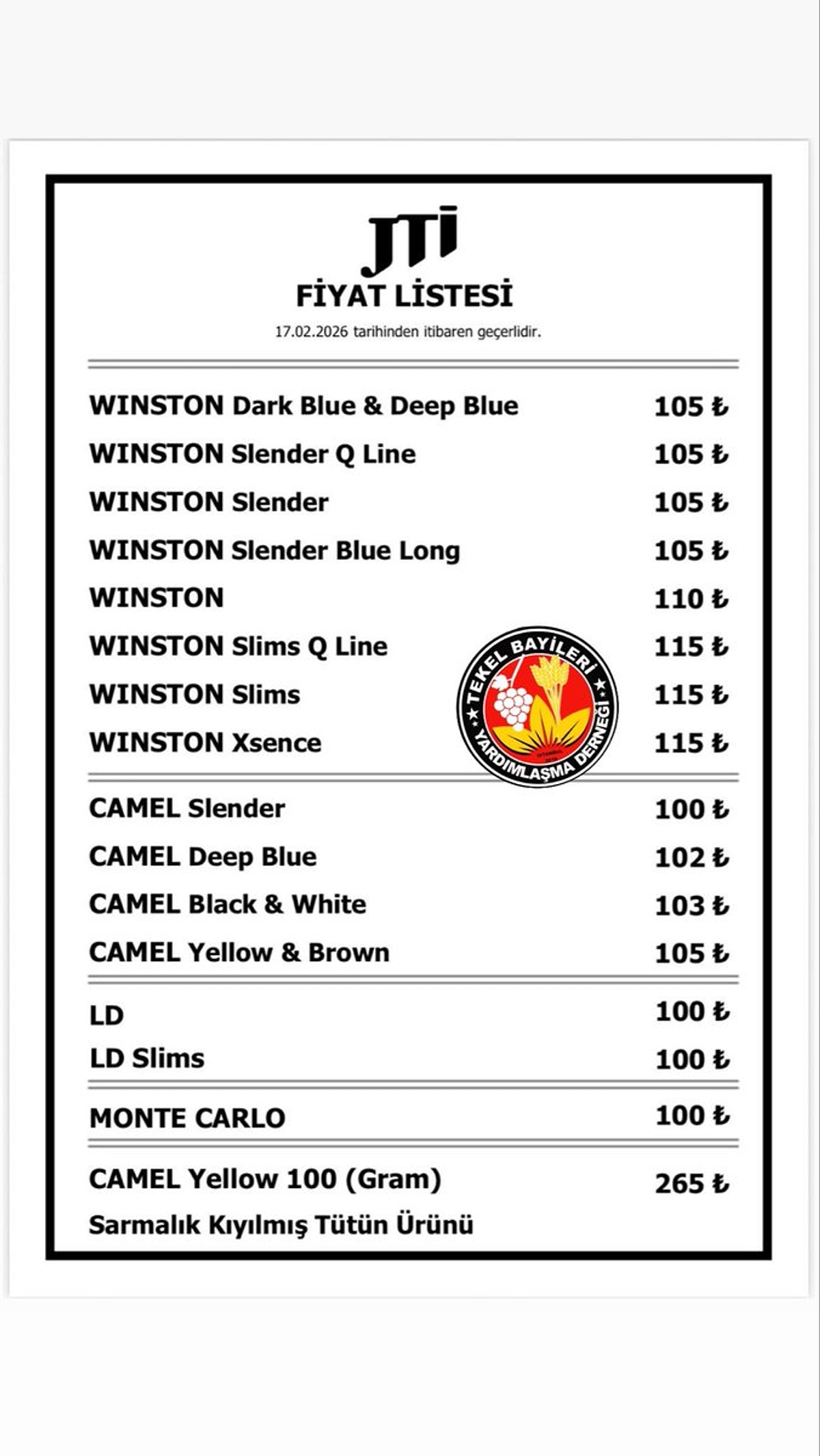 Sigara fiyatlarındaki artış dalgası JTI grubuyla devam ediyor. Tekel Bayileri Yardımlaşma Derneği (TBYD) Başkanı Erol Dündar’ın açıklamasına göre, JTI bünyesindeki markalara önemli bir zam geldi. 17 Şubat 2026 Salı gününden itibaren geçerli olacak yeni tarifeye göre, gruptaki en düşük sigara fiyatı 100 TL’ye fırlarken, en pahalı seçenek 115 TL oldu. İşte Winston, Camel ve LD gibi markaları kapsayan yeni fiyat listesinin detayları…